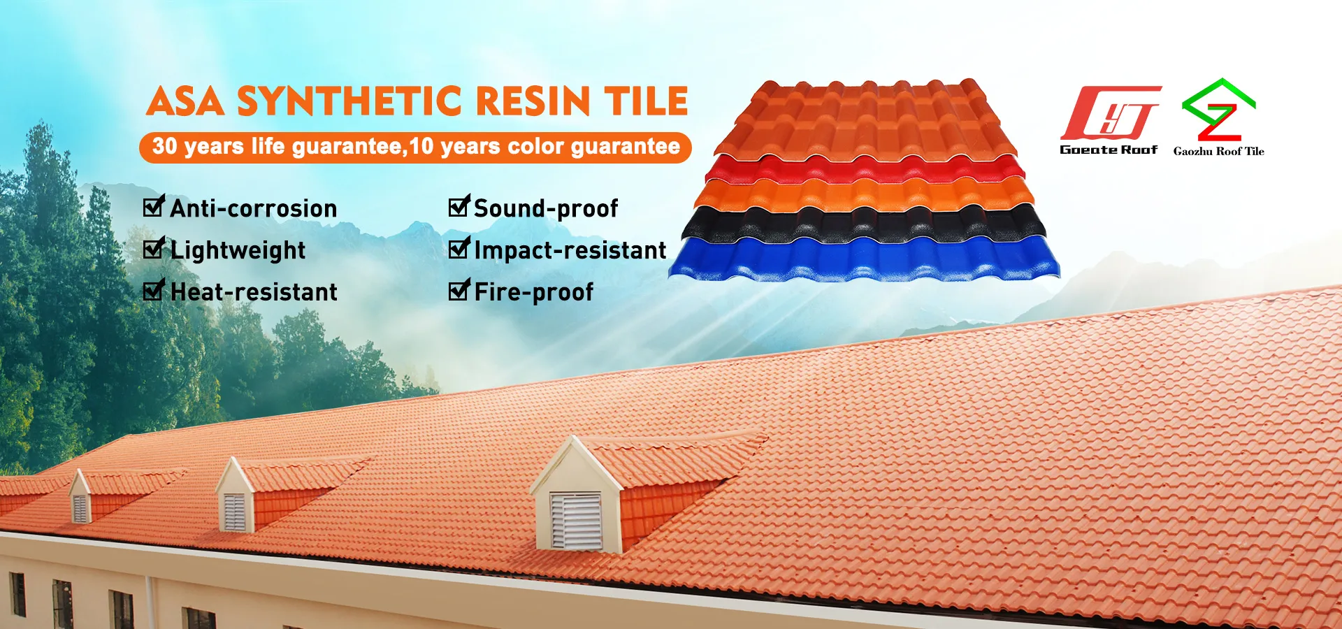 GOEATE ROOF / GAOZHU ROOF is a plastic roof tile manufacturer who providing ASA Synthetic resin tile, ASA PVC roof tile,