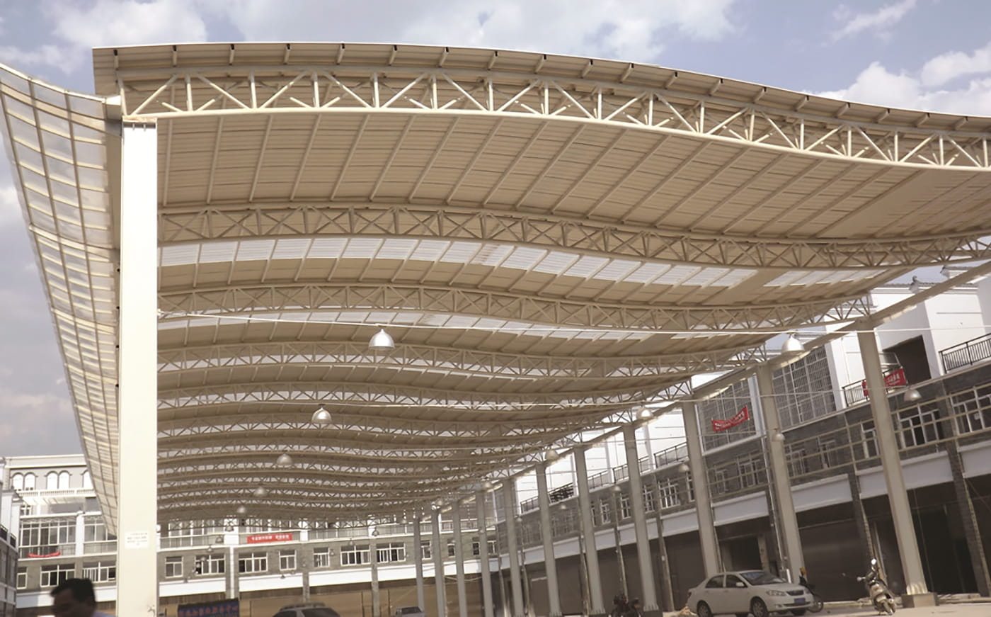 Factory building, Warehouse, Farm's market, Market access, Residential building, Mobile room, Flat-to-sloping roof conversion, Weather sheds, Sun sheds, Car parks, etc.