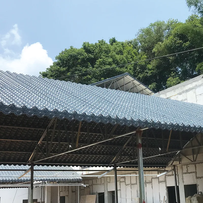 Synthetic tile roofing supplier of Gaoyi brand synthetic tile roofing direct sales manufacturer has excellent corrosion resistance and thermal insulation performance, excellent water resistance and load resistance, long-lasting color, simple installation, green and environmental protection and other product characteristics, and its appearance is beautiful and three-dimensional.