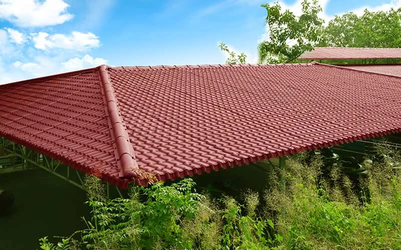 Goeate/Gaozhu Synthetic resin tile is made of imported extra weather resistant engineering resin,it boasts extraordinary durability in natural environment.it is able to maintain its stable color even under long term exposure to such conditions as ultraviolet radiation,dampness,heat and coldness.